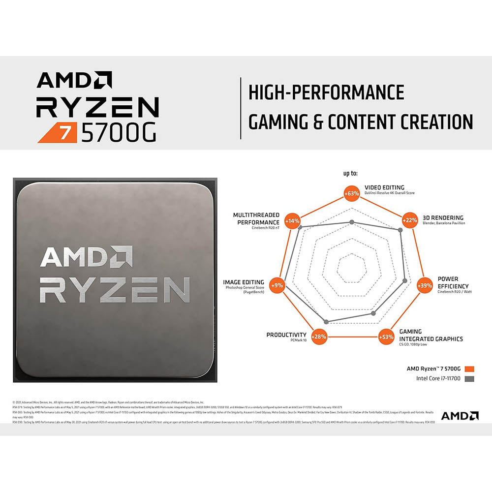 AMD Ryzen 7 5700G 8-Core, 16-Thread Unlocked Desktop Processor with Radeon Graphics