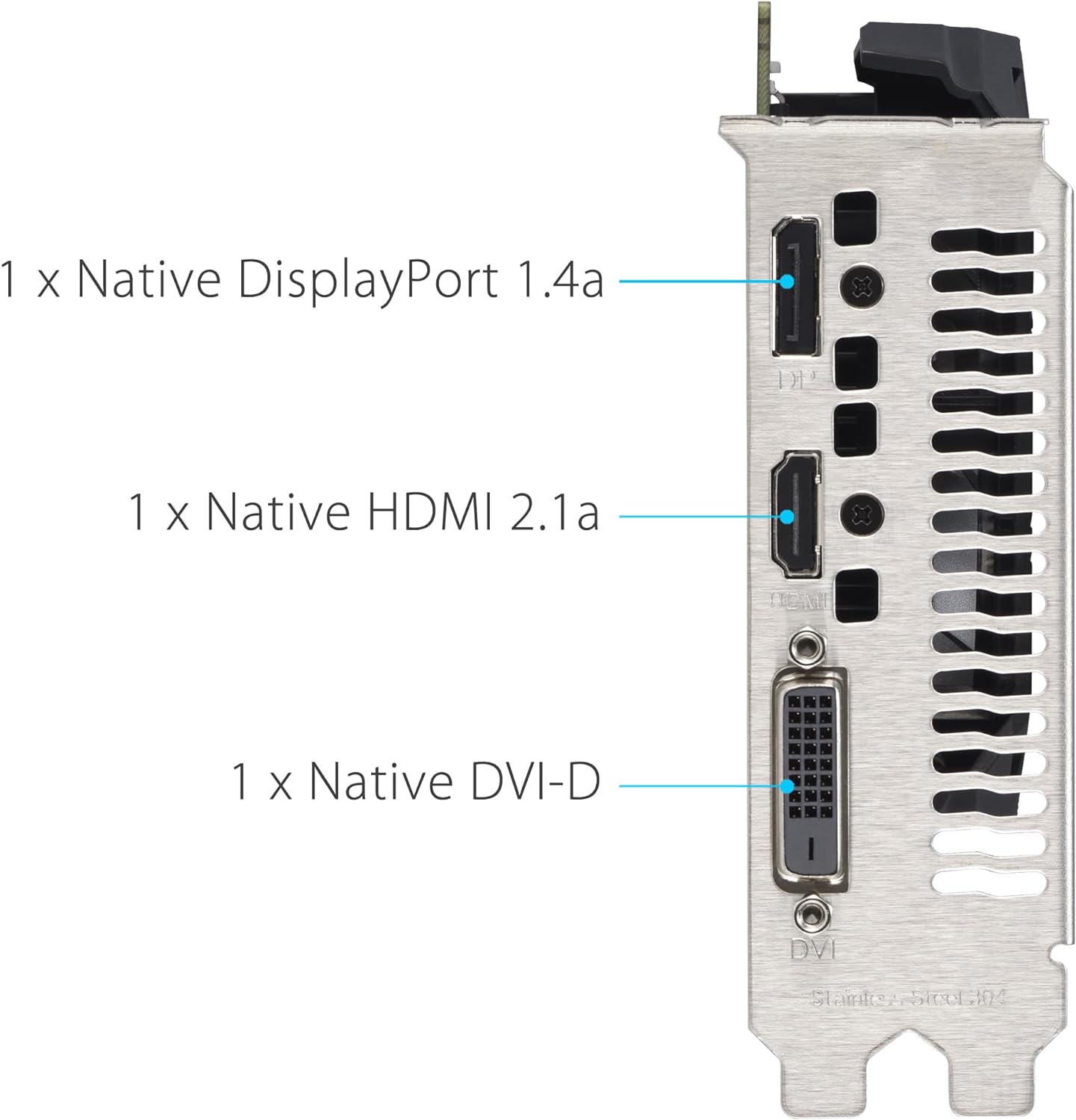 - Display Outputs: 1 x HDMI 2.1, 3 x DisplayPort 1.4a