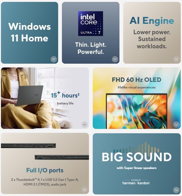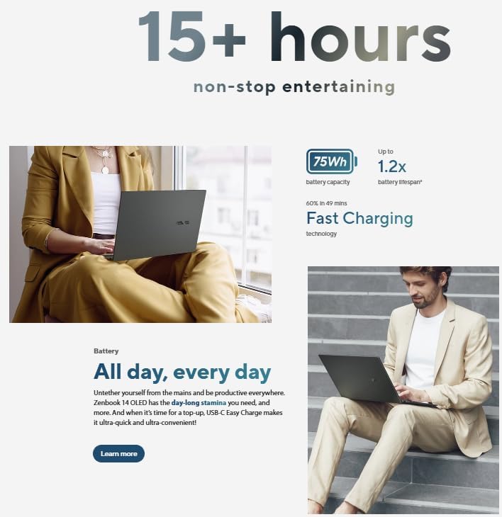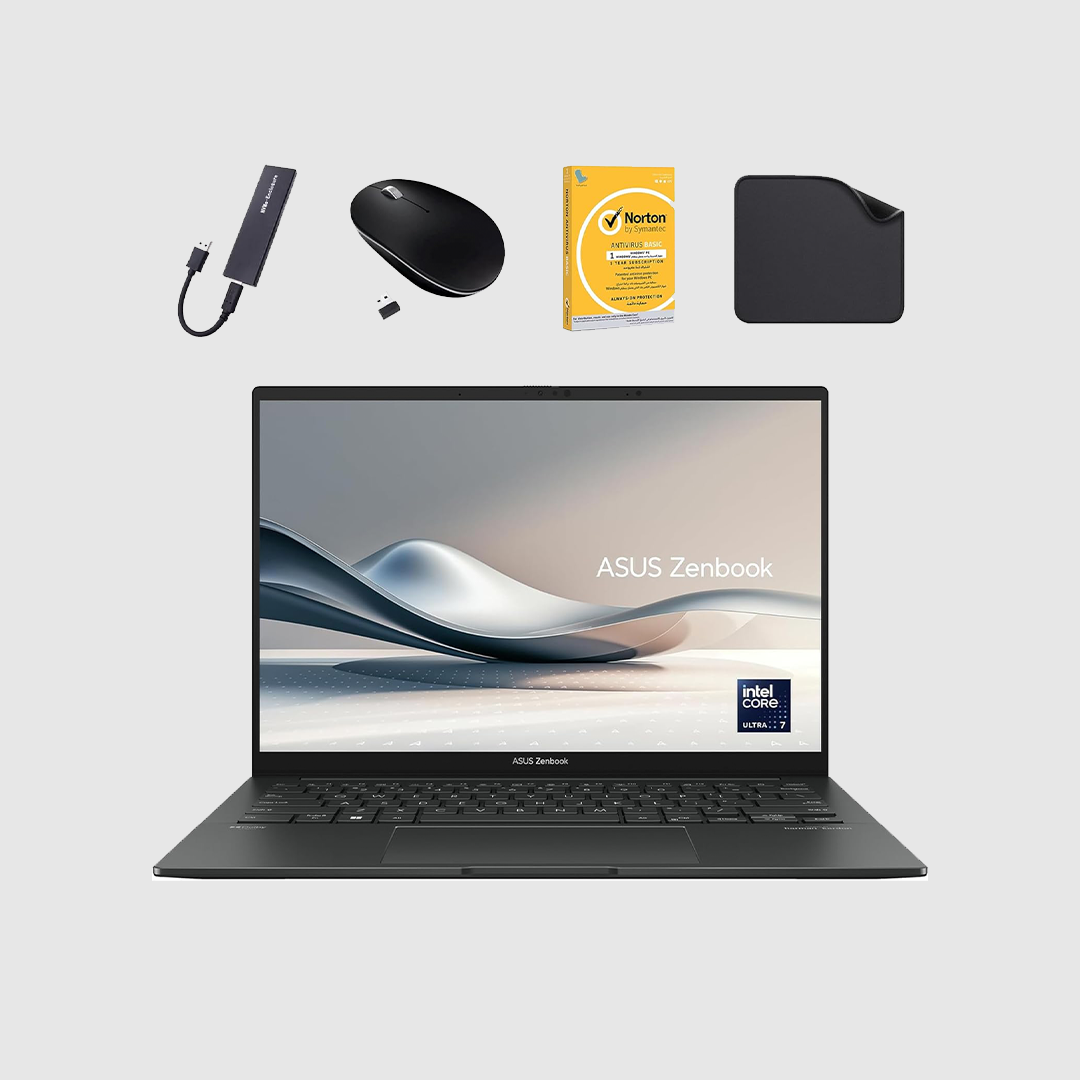 ASUS Zenbook 14 OLED (Q425MA) FREE 1st Wave External SSD 512GB + Wireless Mouse + Anti Virus + Mouse Pad, Intel Ultra 7-155H /16GB RAM - 1TB SSD/14 FHD(1920x1080) OLED/Windows 11 Home - Jasper Gray