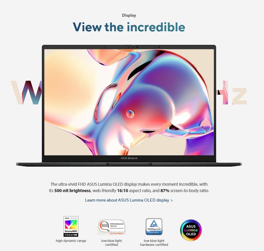 Display: Stunning 14" Q425MA touchscreen LCD with 1920 x 1200 resolution, 500 nits brightness, 100% DCI-P3 color gamut, 16:10 aspect ratio, and thin bezels for immersive visuals.