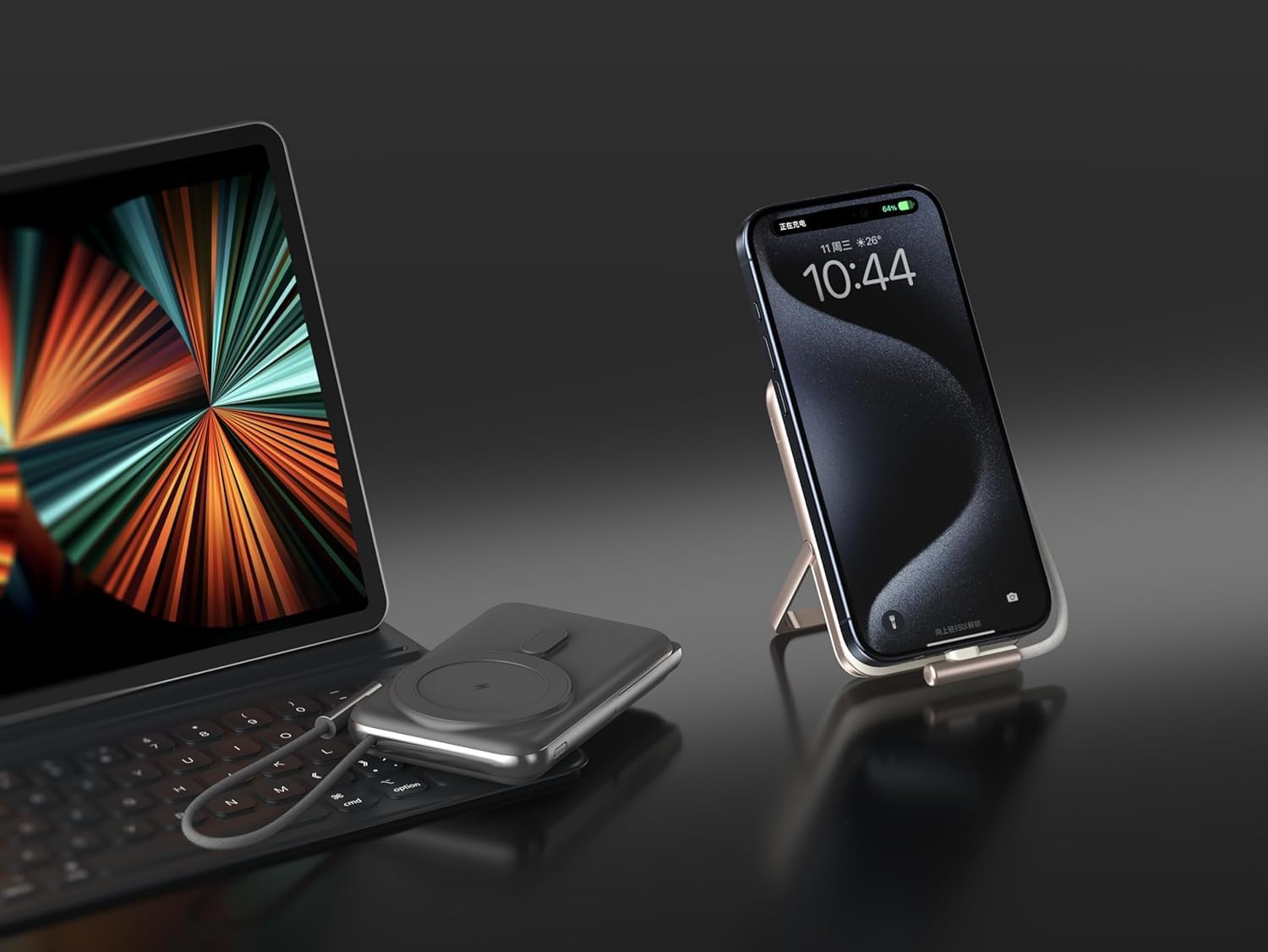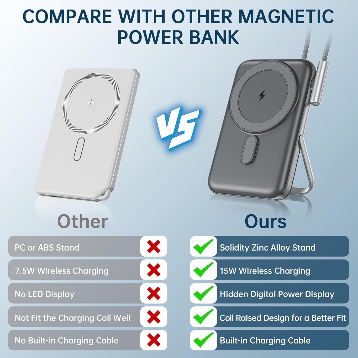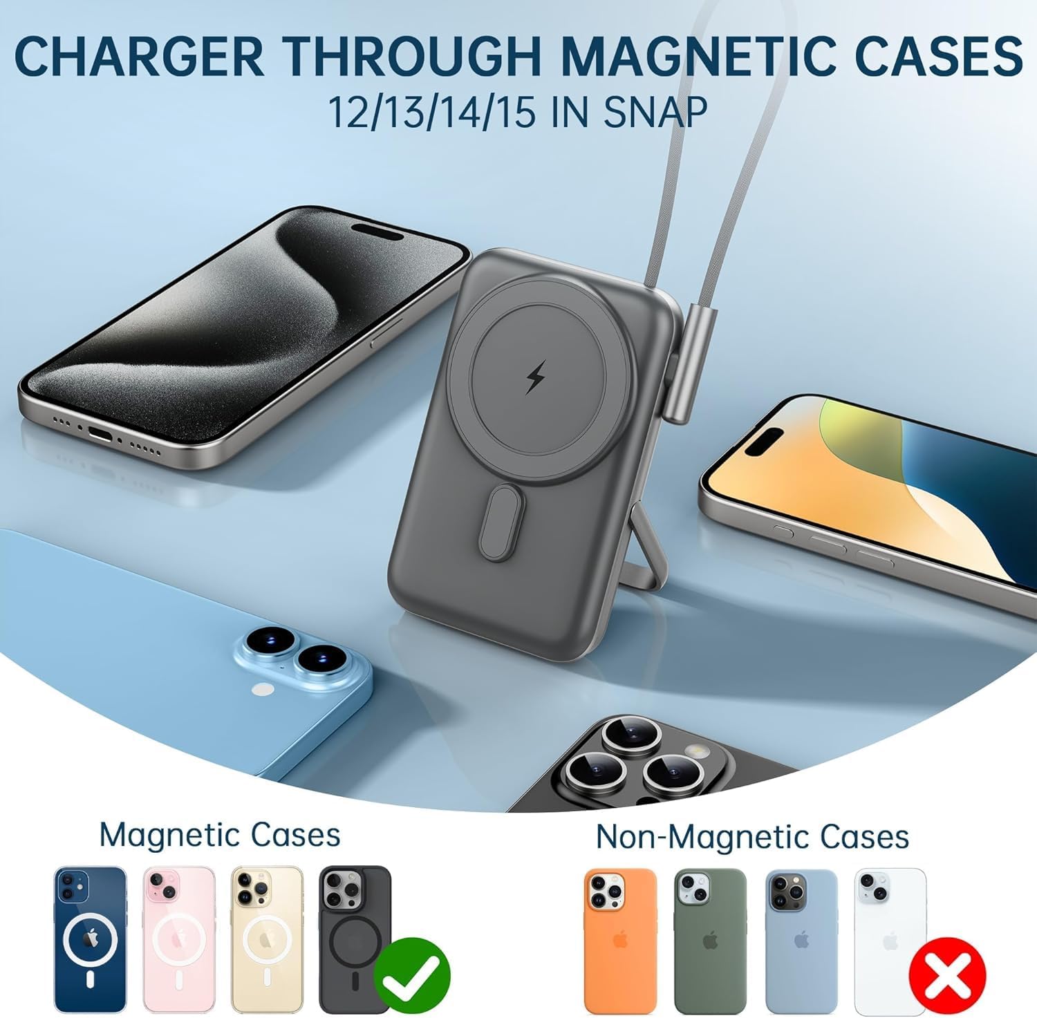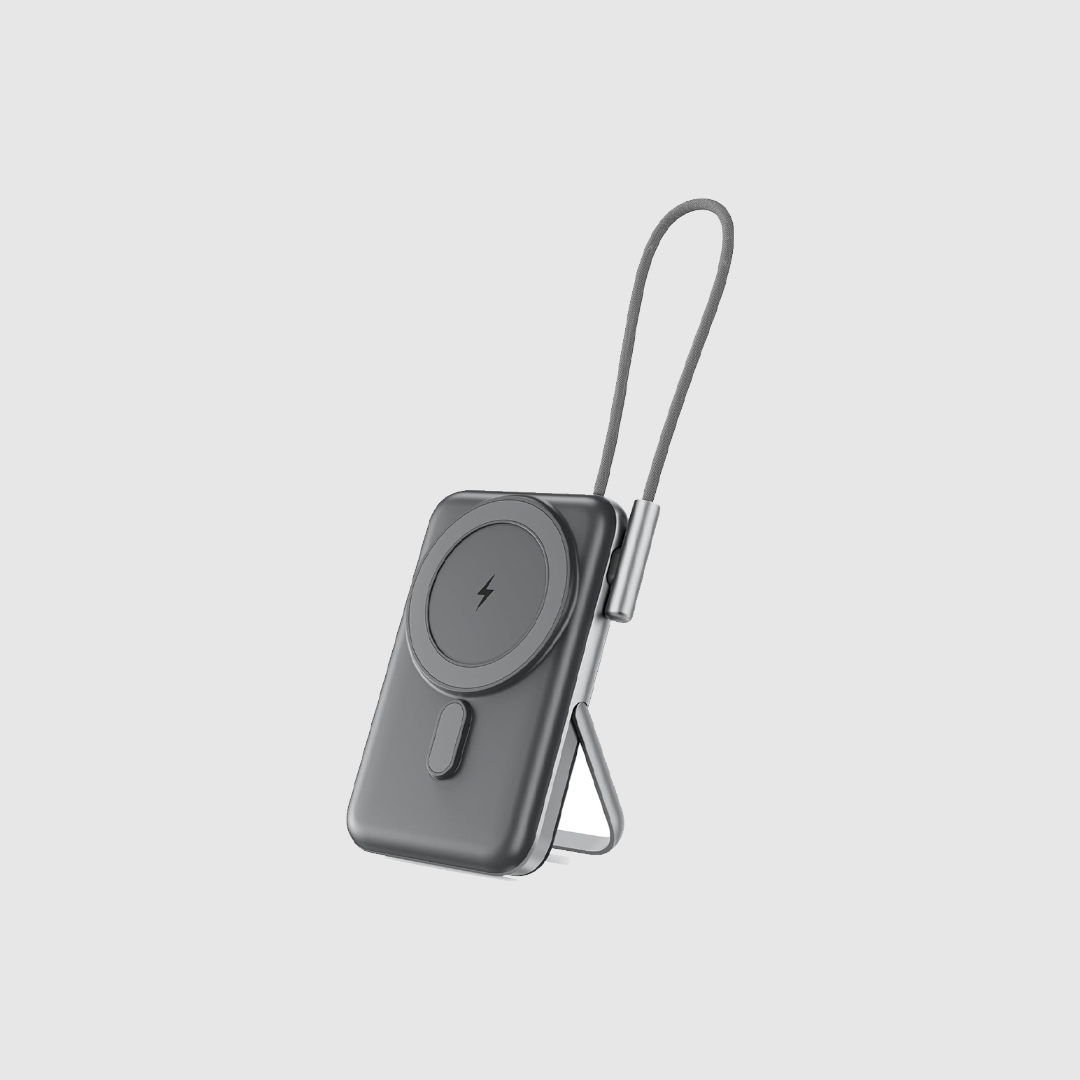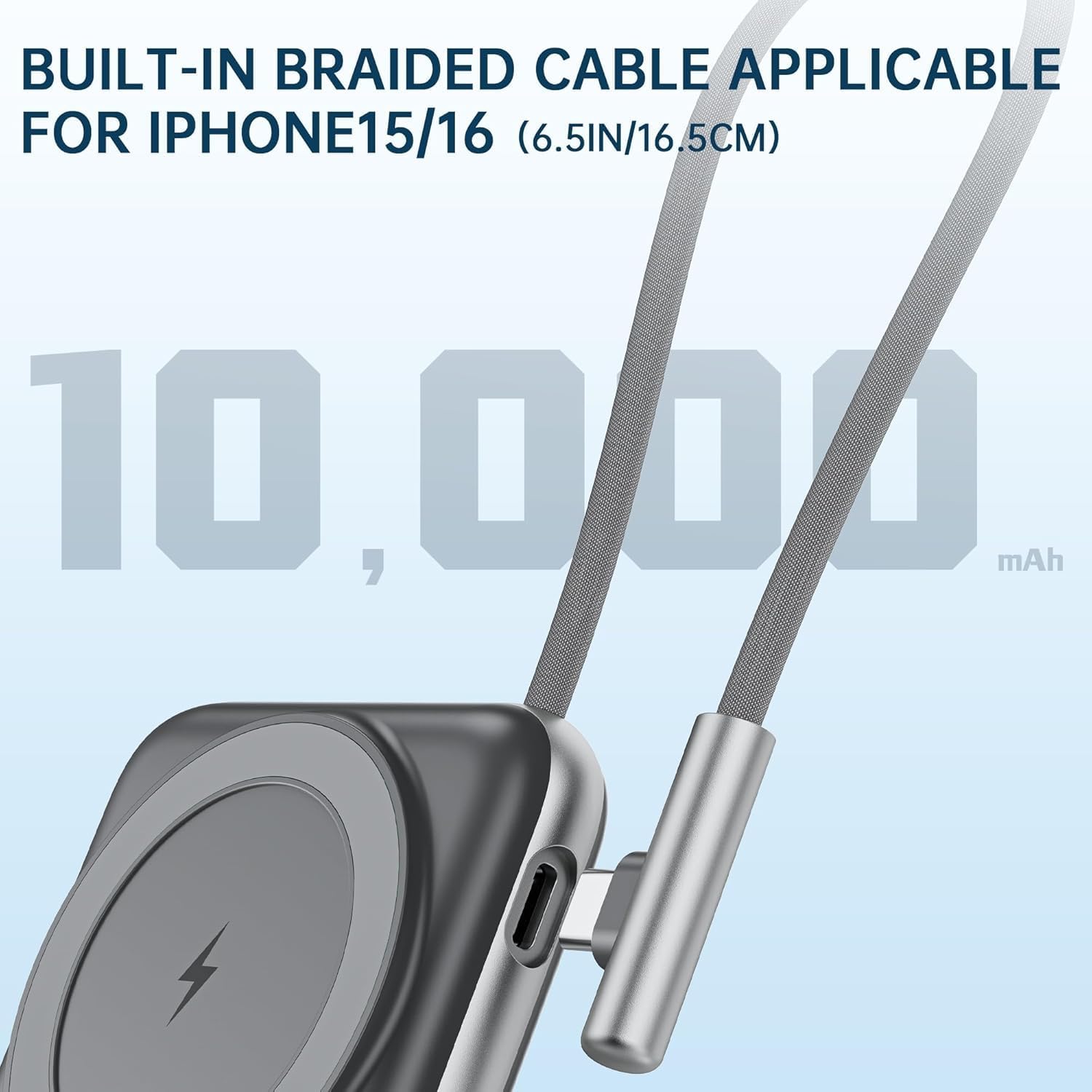 EKR 10,000mAh Power Bank with Stand, Built-in Cable, 20W PD Fast Charging for iPhone 16/15/14/13/12/11 series/Samsung 25Ultra/Android/Airpods (Titanium Black)